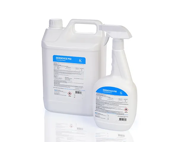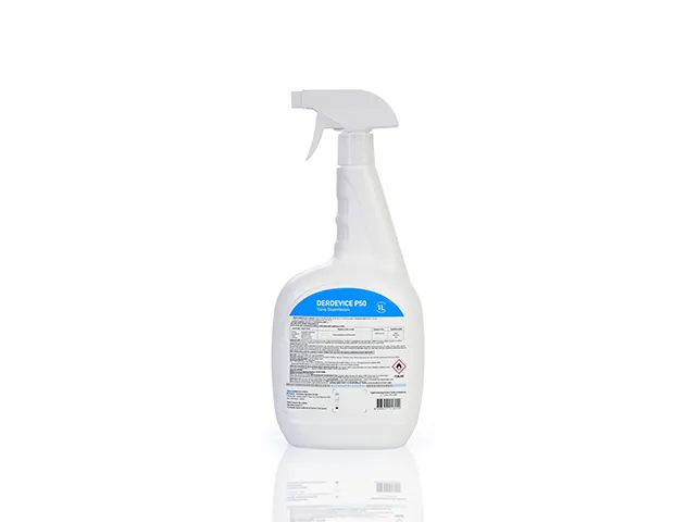 Derdevice P50, hasta yatakları, küvözler, diş üniteleri, ayretörler, ameliyat masaları, serum askısı, hasta başı monitörleri, sedye ve ambulanslar, hasta cildi ile temas eden tıbbi aletler (steteskop, tansiyon aleti vb.), sıklıkla el ve vücut temasının olduğu alanlar (klozet, lavobo, kapı kolu, musluk vb), silinebilir tüm yatay ve dikey yüzeylerin temizliği ve dezenfeksiyonunda kullanılır.
